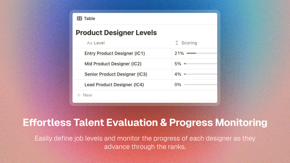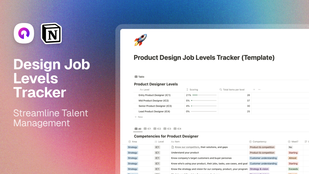 Take this Product Design Job Levels Tracker Notion Template link to duplicate and streamline talent management.
